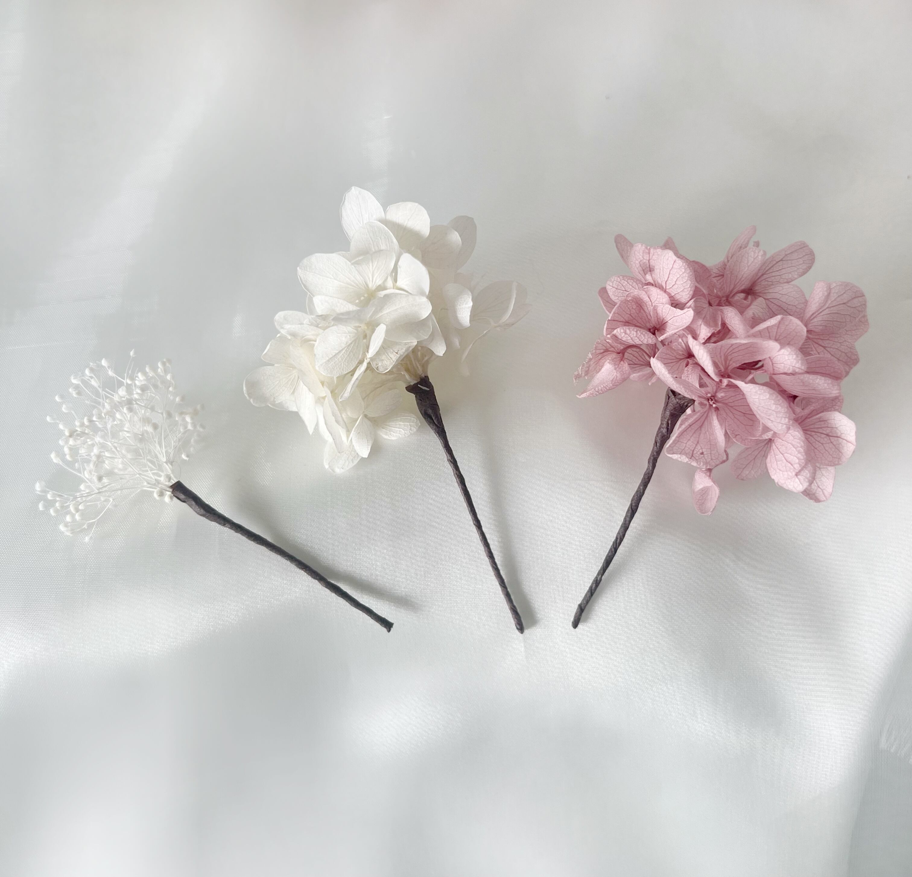 生花を加工したもののため、一つ一つお花の形やお色味が