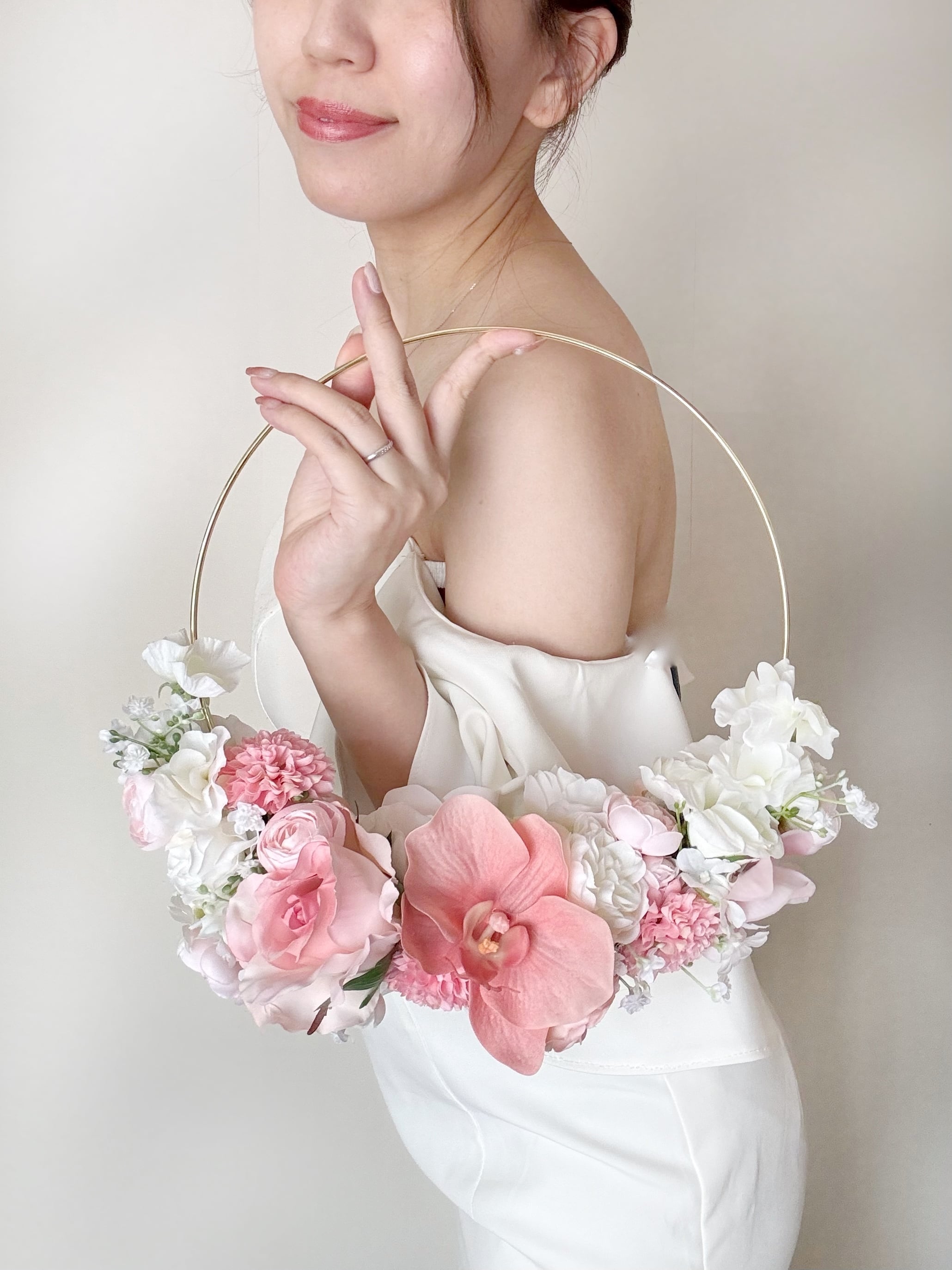 【新作】贅沢ピンクの華やかフープブーケ ブートニア付き